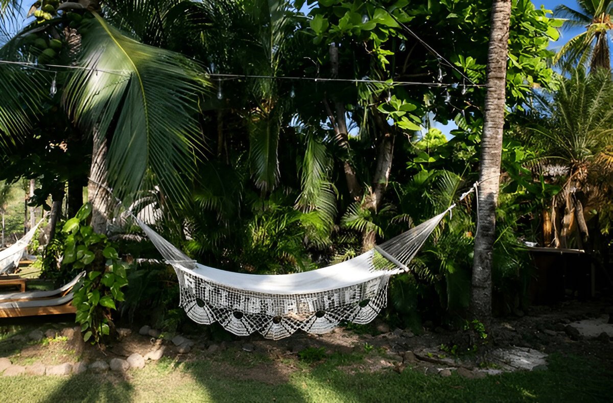 From the moment you arrive, after a serene 20-minute journey along jungle and river paths from the car park, you’ll be enveloped in a world where countless species of vibrant flora and diverse fauna thrive, and the soothing murmur of year-round waterfalls forms a constant, calming symphony. The tropically mild climate, graced with cool, refreshing breezes, ensures a remarkably comfortable environment, perfect for for deep inner work and profound rest.