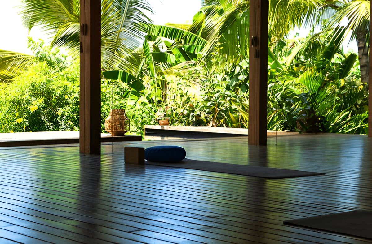 This 1,200 square foot, Tropical Modern Zen masterpiece, crafted from eco-harvested teak, provides an expansive and unobstructed space for yoga asanas, dance, workshops, and communal gatherings.