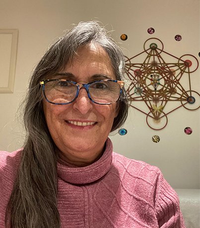 As an Energetic and Vibrational Healer, she works with the fundamentals of quantum reality — integrating sound, light, color, and geometric patterns with crystals, gems, essences, and other vibrational modalities.